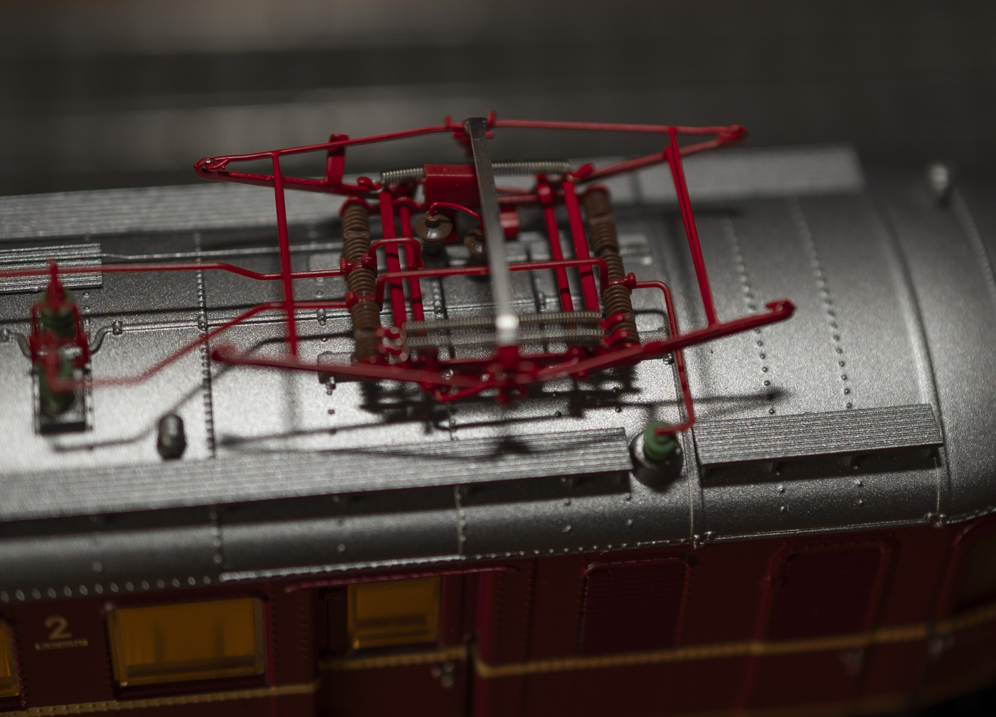Die Dachaufbauten wie der Unterbau des Wagenkastens sind detailliert, Speichenräder inklusive. Das Modell ist wirklich etwas für die sprichwörtlichen Nietenzähler. Die gelbliche Innenbeleuchtung dürfte dem des Originals nahe sein. Etwa schwer gestaltet sich das Kuppeln der beiden Zugteile. Dafür ist eine der Packung beigelegte Kupplungshilfe nötig. Ein Minimanko: die Dachstromabnehmer sehen perfekt aus, sind aber ohne Funktion – gefahren wird also mit Strom über die Schiene.